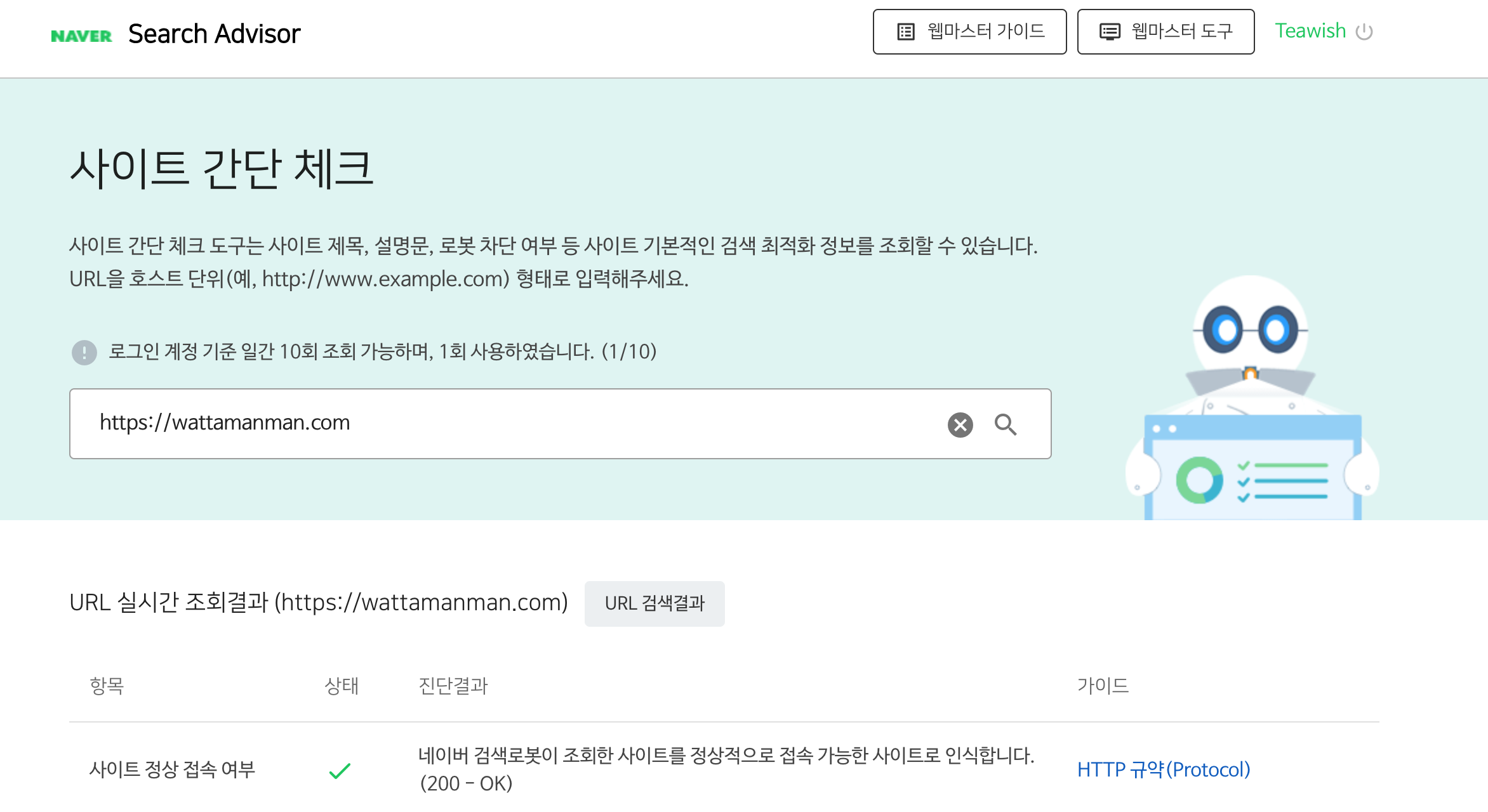 네이버 검색어드바이져 웹마스터도구 간편확인을 이용하시면,