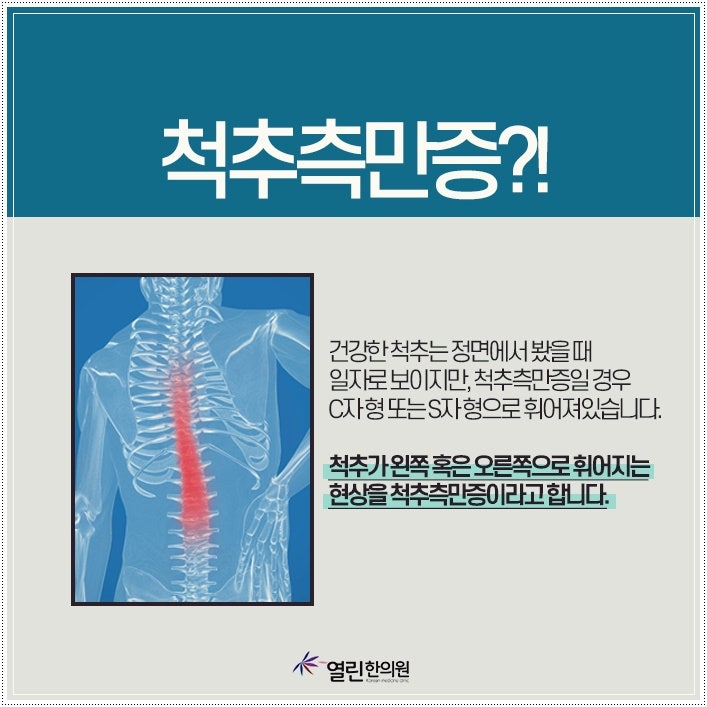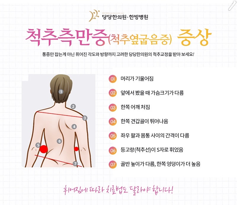 정상적인 척추는 정면에서 보면 곧게 보이지만 척추 측만증은 척추가 한쪽으로 휘어져 있습니다. 평소 자세를 흐트러뜨리거나 중간자세로 웅크리는 자세는 척추의 균형을 깨뜨릴 수 있습니다. 부산 척추측만증의 원인이 될 수 있습니다. 척추측만증은 크게 기능적 척추측만증과 구조적 척추측만증으로 나뉩니다. .