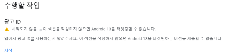 Android 13이 출시된 이후로 targetSdkVersion을 32로 업데이트하고 광고 ID 권한을 추가하고 계속 진행할 수 있지만 시간이 걸릴 것으로 예상되어 진행하지 않았습니다.