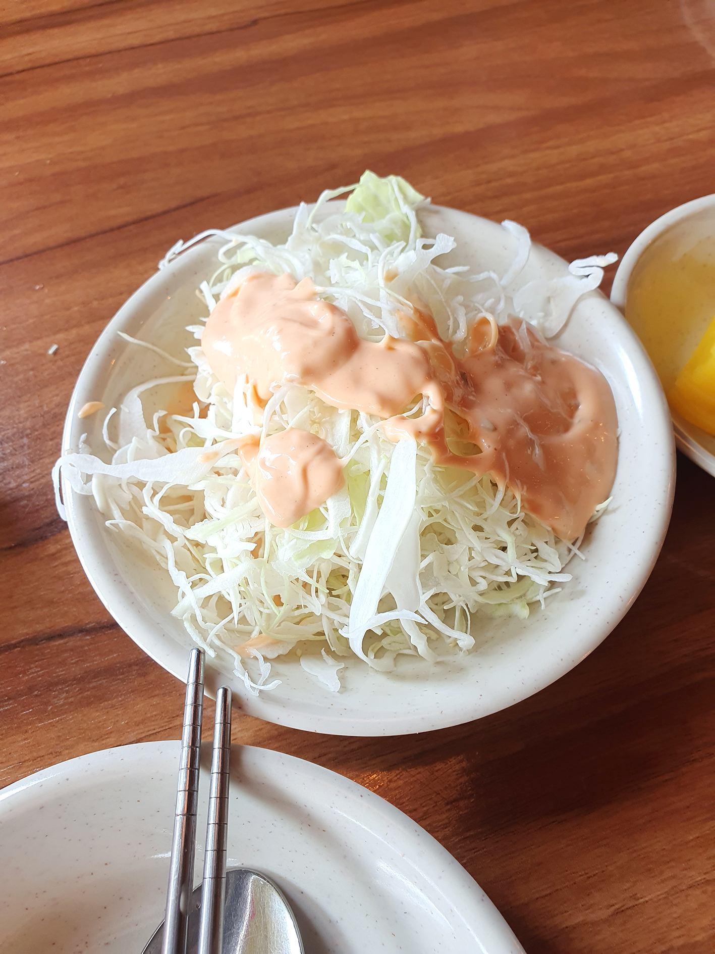 샐러드는 혼자 다 먹었다.