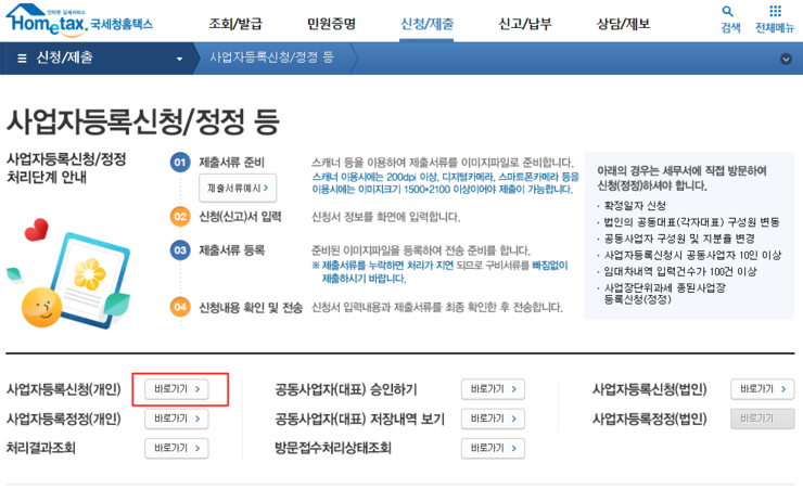 홈택스 개인사업자 사업자등록증 신청