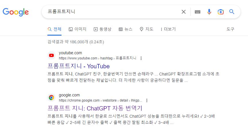 크롬에 프롬프지니 확장 프로그램을 설치하시면 인공지능을 좀 더 편하게 이용하실 수 있습니다.