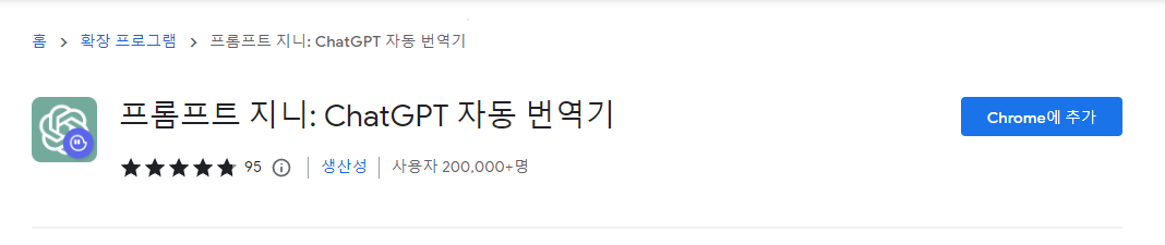 Chrome에서 Prompt Genie를 검색하고 아래 ChatGPT 프로그램을 다운로드합니다.